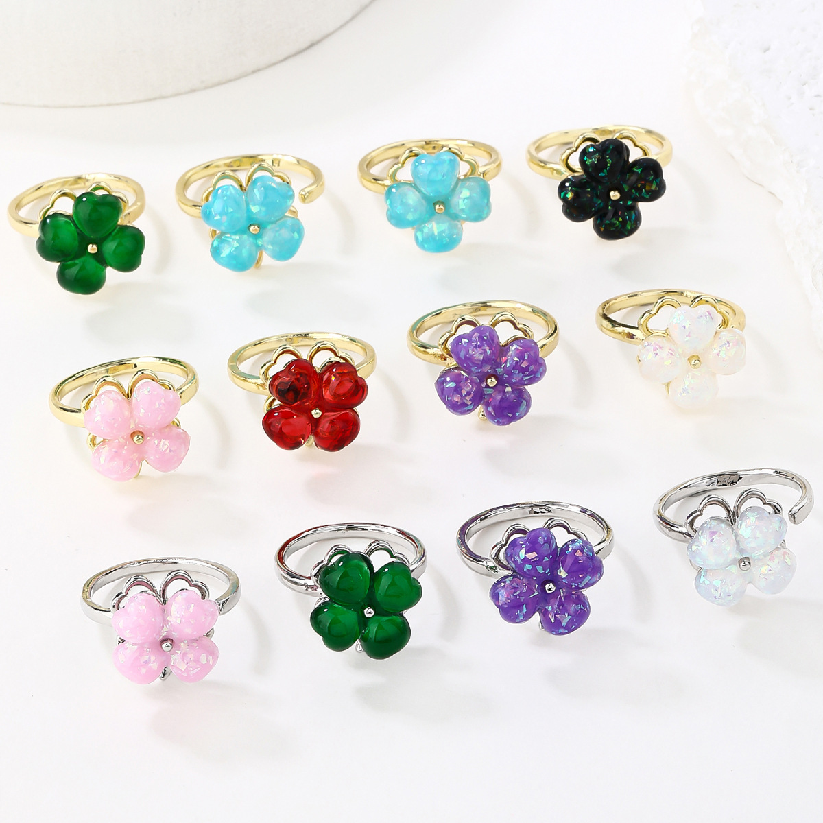 European and American Cross-Border Best-Selling Four-Leaf Clover Rotatable Anti-Anxiety Ring for Women, Gold-Plated Copper Open Ring