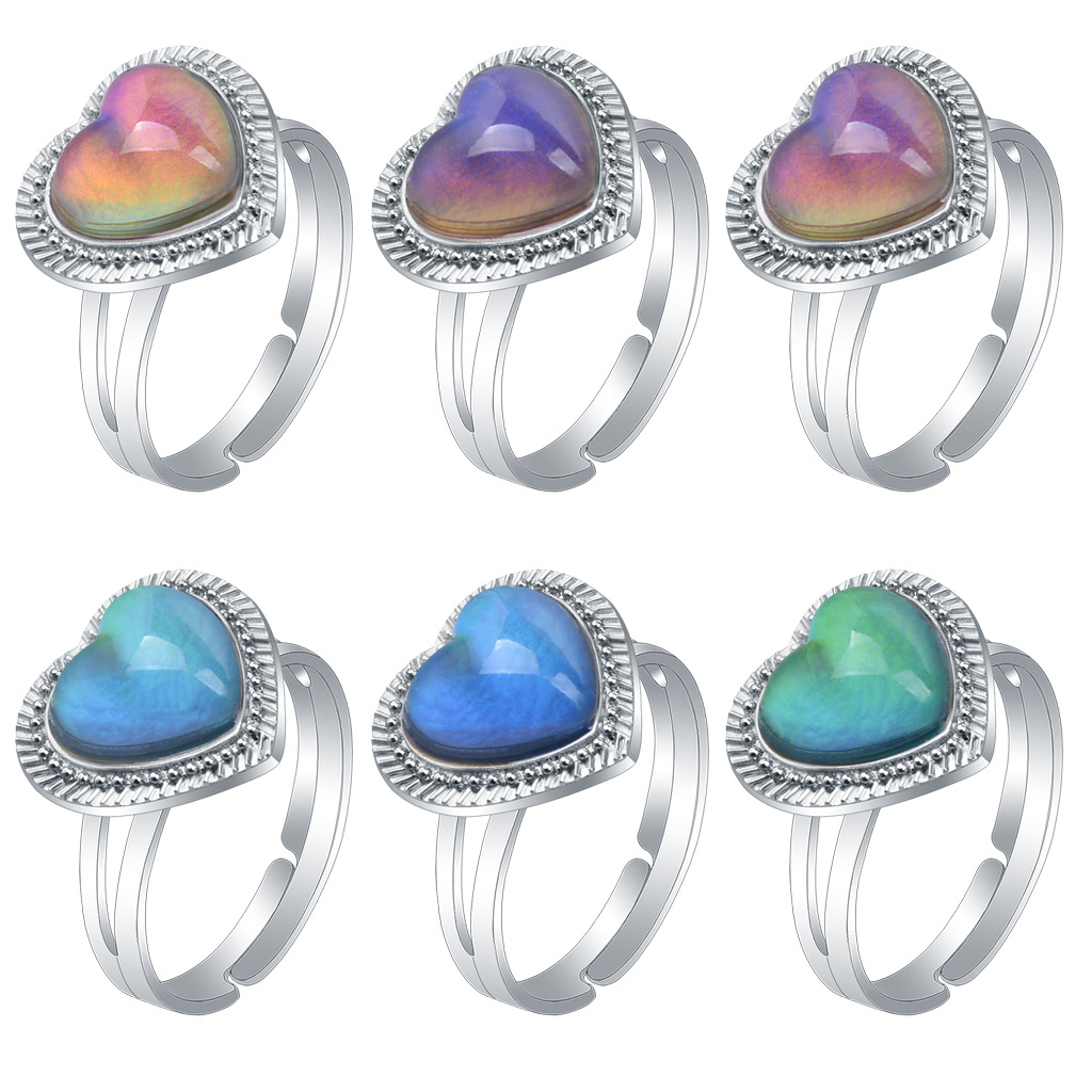 Cross-border European and American fashion women's love heart gem temperature-sensitive emotional discoloration ring opening adjustment manufacturers