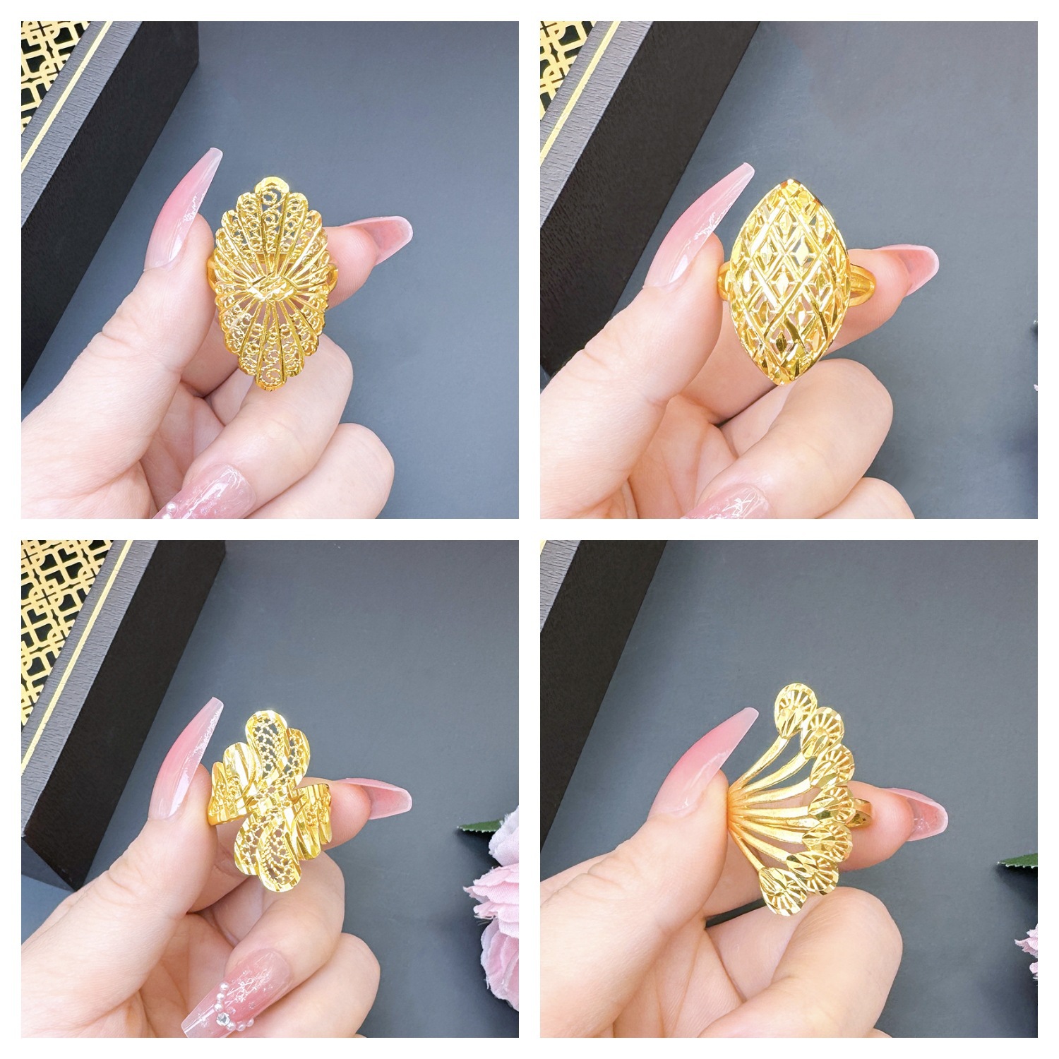 Sand Gold Ring for Women That Does Not Fade for a Long Time, Niche High-End Design Opening, Exaggerated Real Copper Retro Imitation Gold Accessories New Product