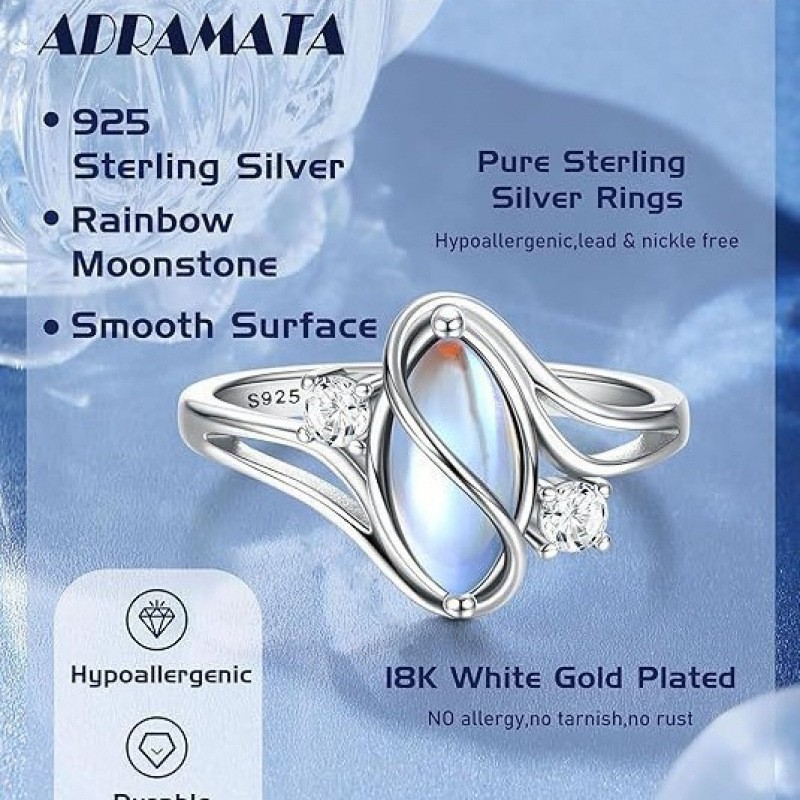 Amazon's New Jewelry European and American Fashionable and Personalized Oval Moonstone Inlaid Zircon Women's Geometric Ring