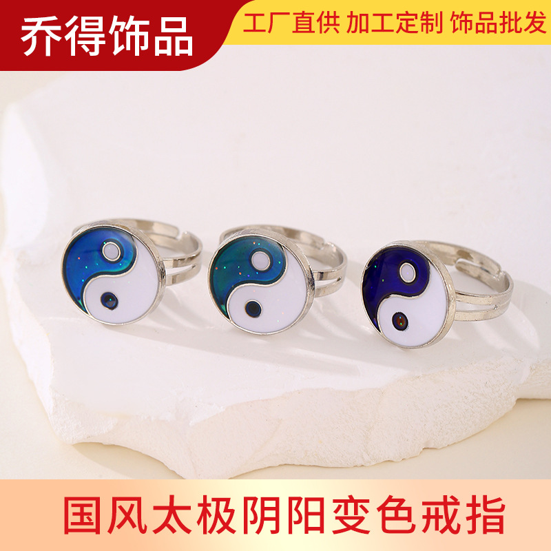 Guofeng Taiji Yin and Yang Temperature Sensitive Color Changing Ring Women's Fluorescent Color Changing Ring Gift Wholesale Cross-border Exclusive