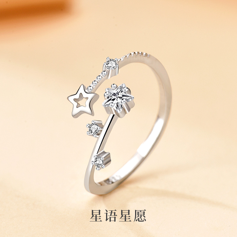 S925 Sterling Silver Cut Out Five-Pointed Star Ring Female Stylish Niche Cold Style Design Flash Diamond Meteor Open Index Finger Ring