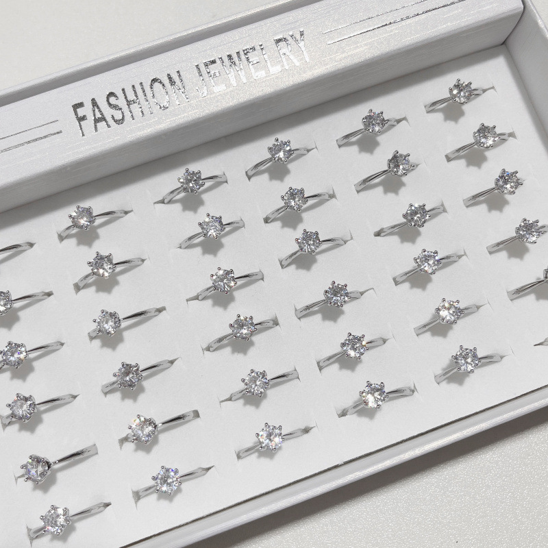 Copper inlaid zircon diamond ring simulation diamond ring female wedding proposal couple ring wedding ceremony props wholesale bracelet
