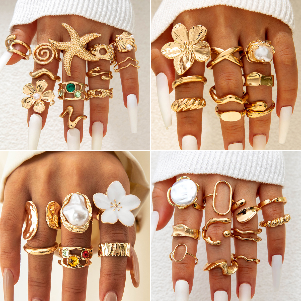 European and American Cross-Border Design Liquid Lava Flower Open Ring Set Baroque Imitation Pearl Ring for Women