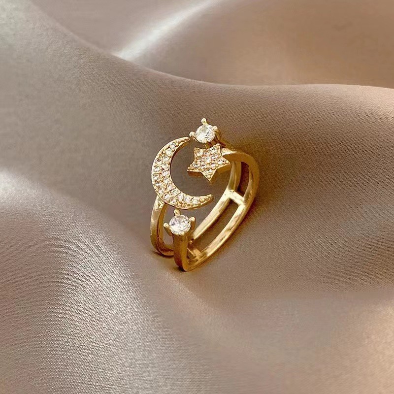 Stars and Moon Open Ring Women's Fashion Personality Adjustable Index Finger Ring Zircon High-Quality Ring Tail Ring Manufacturer
