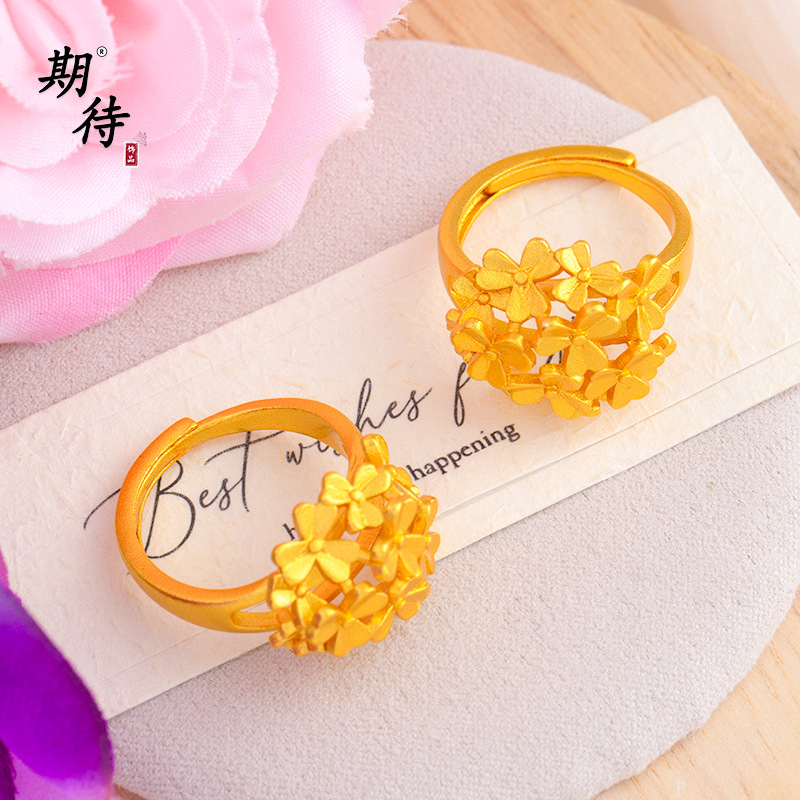 Wholesale Fashion Versatile Hollow Three-Dimensional Flower Hand Accessory Gold Shop Same Style Sand Gold Hydrangea Ring Gift for Girlfriend