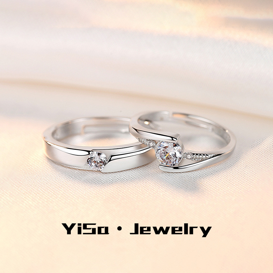 Douyin fast-hand wedding imitation moissanite diamond ring six-claw ring female opening pair pair zircon 1 karat silver ring