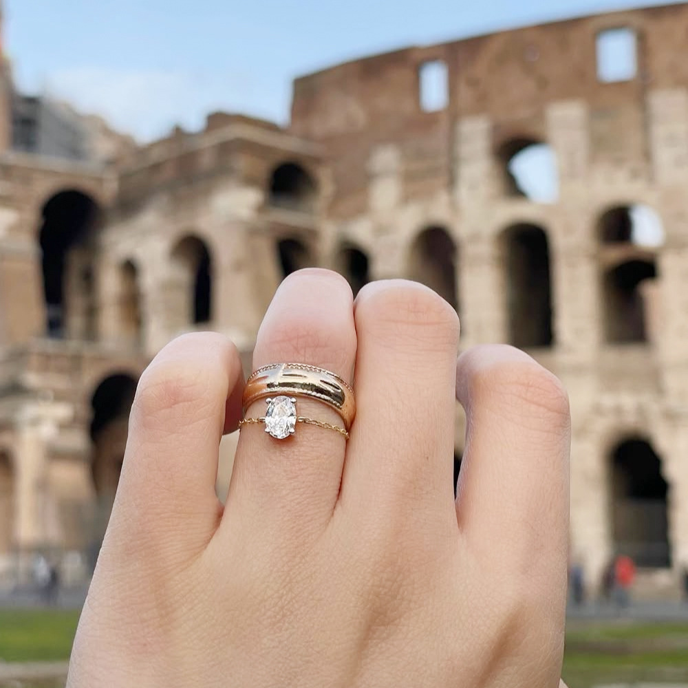 European and American Cross-Border New Copper Gold-Plated Oval Stretch Ring Women's Fashion Versatile Adjustable Chain Personalized Ring