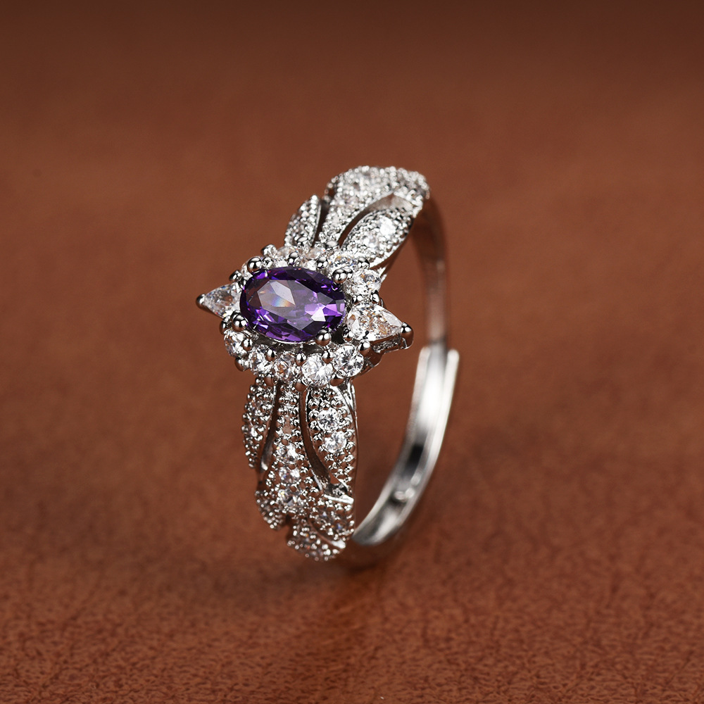 Cross-Border Purple Zircon Wheat Ear Ring for Women, Niche High-End Non-Fading Ring, Fashionable, Simple and Versatile Ring Bracelet