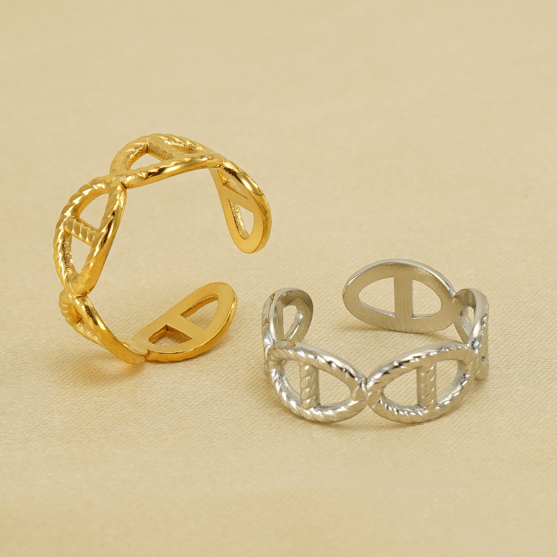 European and American fashion titanium steel hollow ring Women's cold wind opening adjustable 18K stainless steel simple ring ring ring