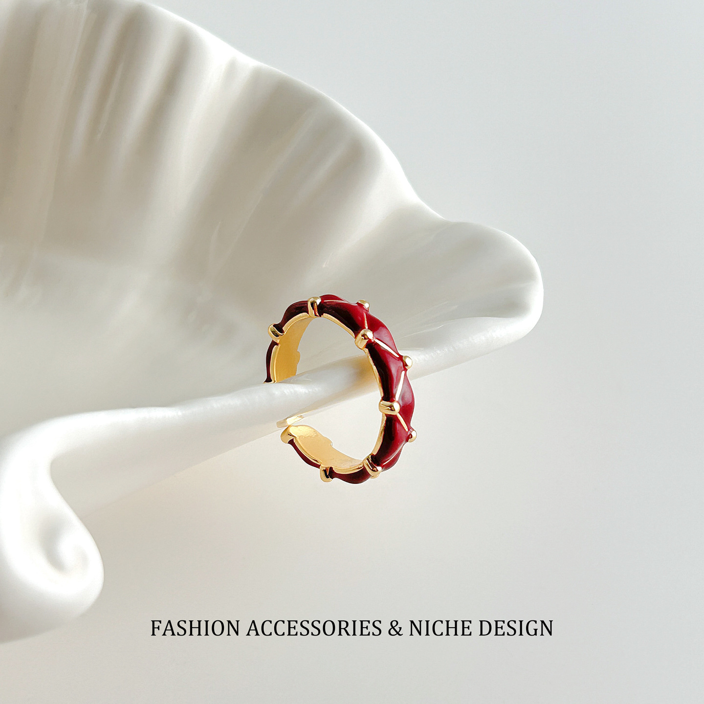 Ankola Red Diamond Ring for Women, Adjustable Open Design, Niche Line Index Finger Ring, Light Luxury Artistic Ring