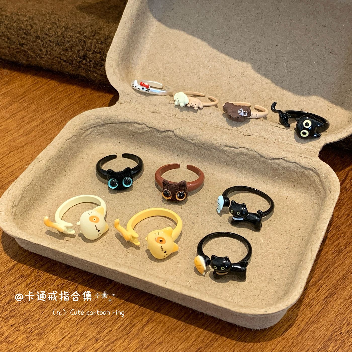 Flocked Cartoon Cute Cat Open Ring Adjustable Female Funny Monster Niche Design Hand Jewelry