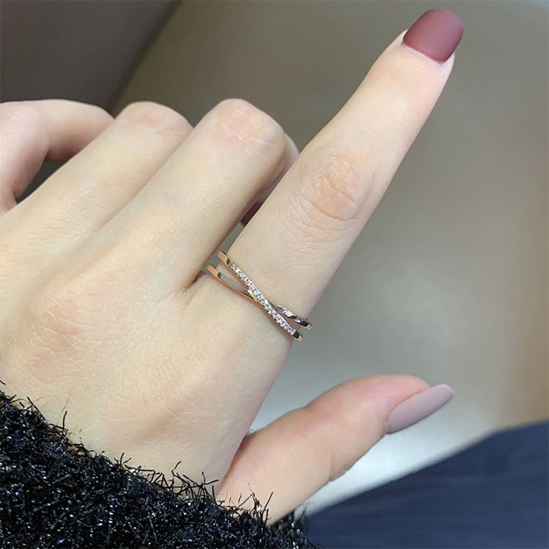K-Style of X-Shaped Cross Micro-Set Diamond Rose Gold Ring for Women, Trendy Fashionable Color Gold Index Finger Ring Jewelry Wholesale