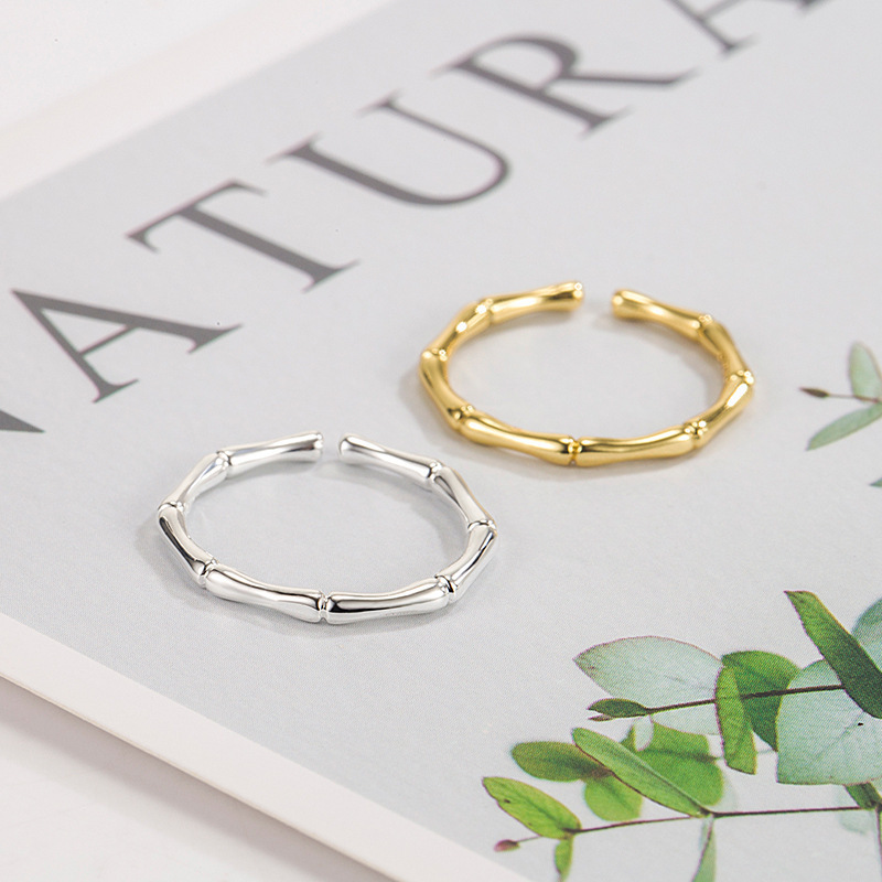 Minimalist Bamboo Ring for Women, Niche Design, 2023 New Trendy Personality Plain Band, Index Finger Open Luxury Ring