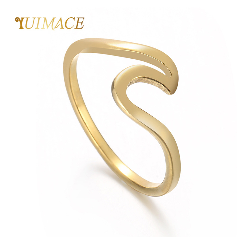 French Retro Open Stainless Steel Chain Ring European and American Fashion Open Adjustable 18K Gold Plated Titanium Steel Ring for Women