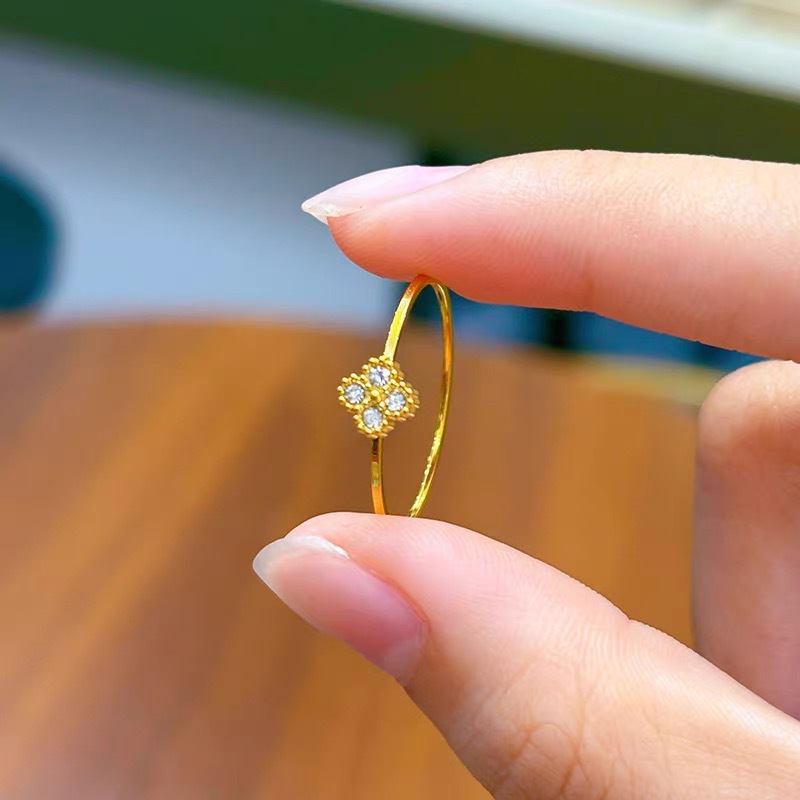 Classic Thin Circle Four-Leaf Clover Ring for Women Titanium Steel Non-Fading Niche Design Stylish Versatile Flower Ring Ins