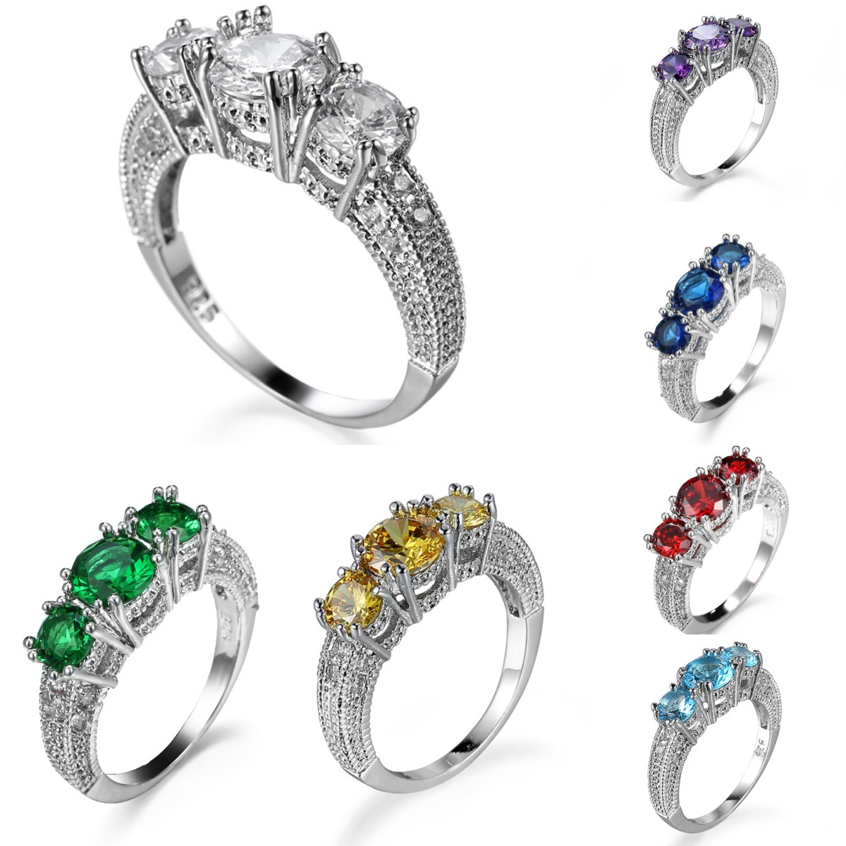 Chenrui Wish Cross-Border Ladies Elegant Simple and Atmospheric Zircon Three-Piece Ring Series 2 Direct Sales
