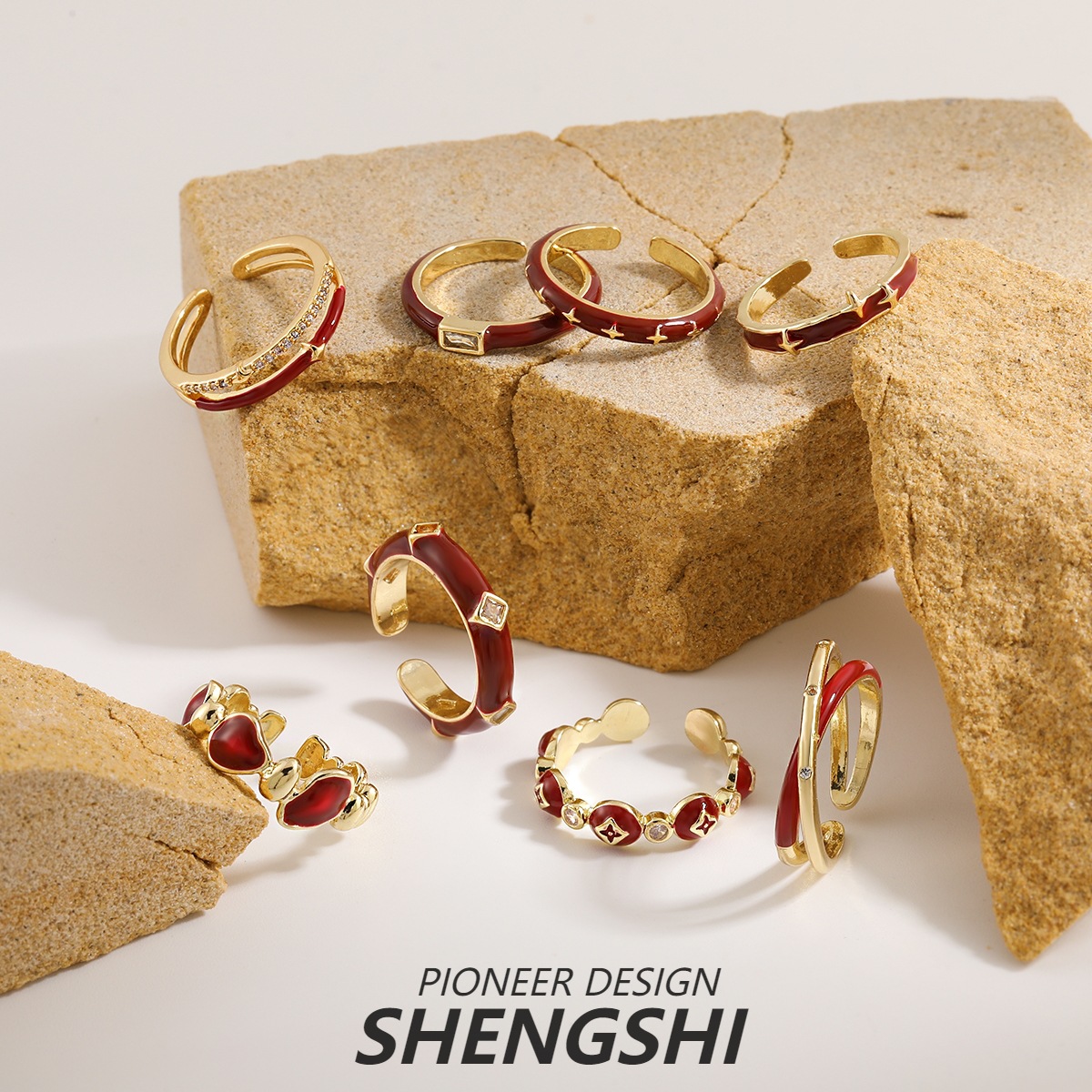 Ankora Red Enamel Geometric Ring for Women Niche Design High-End Light Luxury Ring Fashion Versatile Jewelry