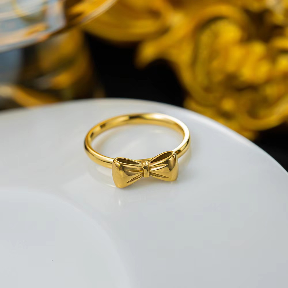 Gold Store's Same Non-Fading Titanium Steel Ring for Women, High-End and Personalized 18K Gold Index Finger Versatile Bow Ring
