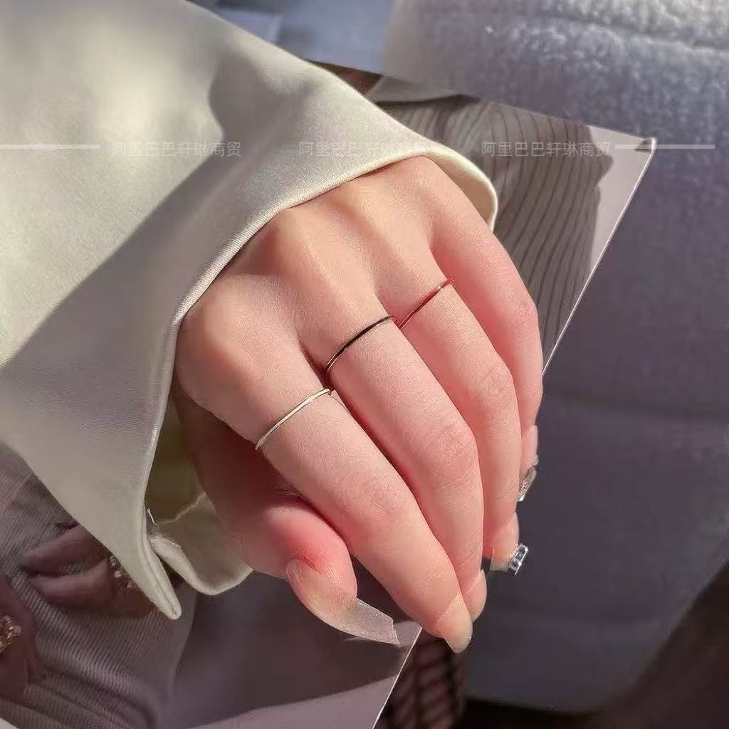 Titanium Steel Colorful-Preserving Ultra-Fine Index Finger Ring for Women's Joints Simple Niche Design Colorfulful Tail Ring Trendy Cold Style Stylish