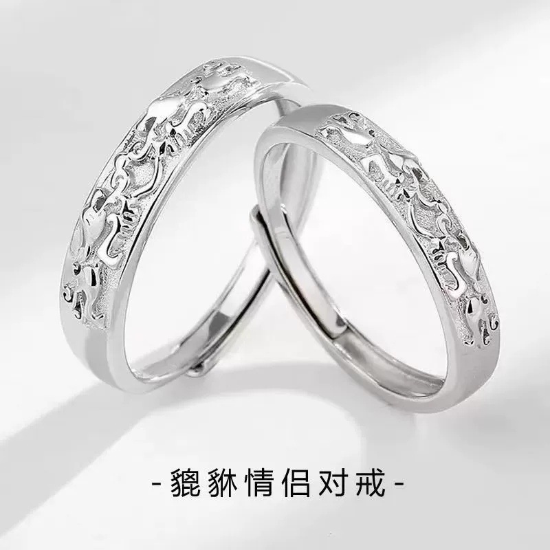New Pixiu Couple Rings for Men and Women, New Chinese Style Minimalist Three-Dimensional Relief Design, Adjustable Open Ring