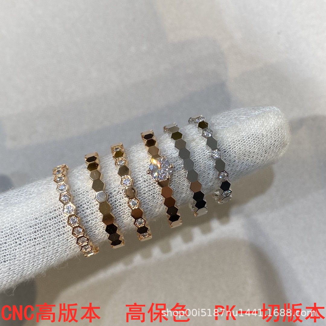 CNC Seiko honeycomb ring 18K rose gold female ring diamond honeycomb geometric figure Factory Live wholesale