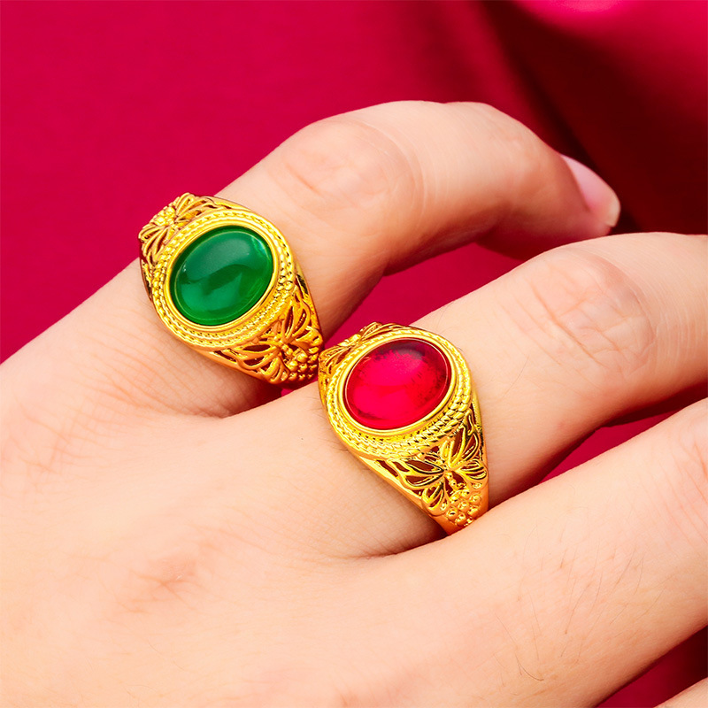 Vietnam sand gold women's fashion Green red open ring cross-border jewelry ring female Red Green