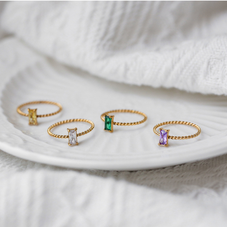 Multi-color European and American ins Plated 18K Gold Fine Twist Color Square Diamond Ring Women's Fashion Personalized Titanium Steel Ring