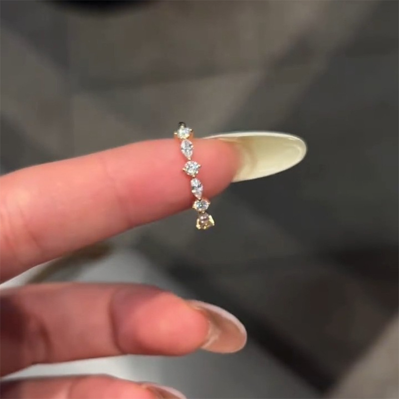 Simulated Diamond Ring, High Carbon Diamond Ring, Simple, Fashionable and Versatile, Simulated Diamond Half Circle, Simple Straight Row Ring, Diamond Ring, Tail Ring for Women