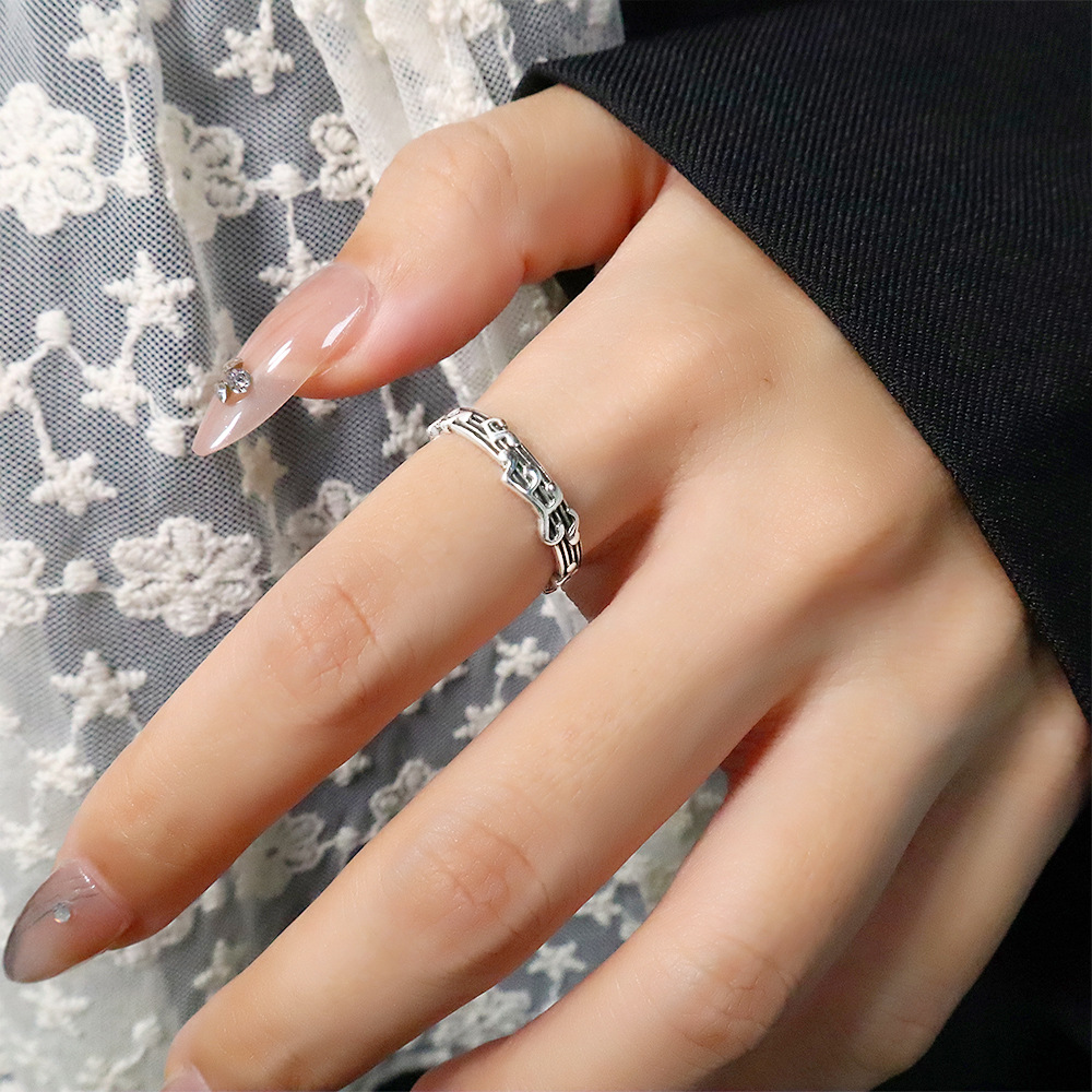 Ancient Cat Ning Note Five-Line Musical Score Ring Women's Artistic Mori Style Retro Do Old Thai Silver Ring Adjustable Opening