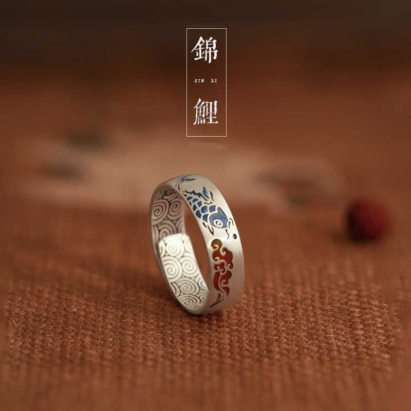 Chiba Antique Thai Silver Country Style Ring Female Niche Design Ring Vintage Fish Ring Female Opening Adjustable