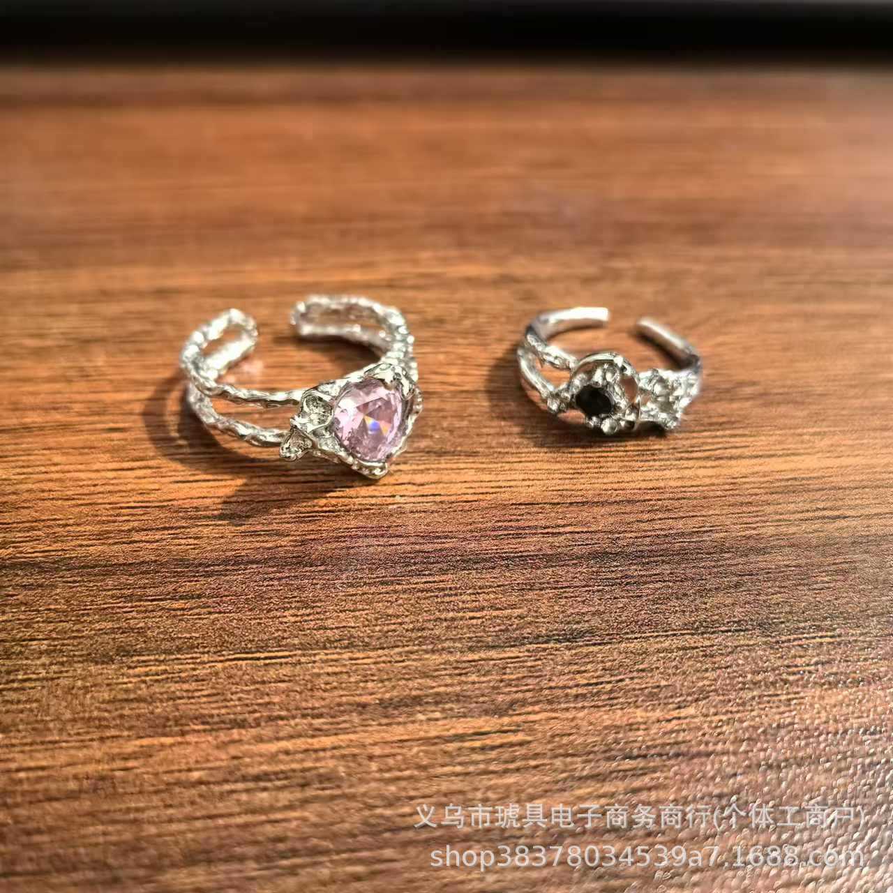Cross-border Pink Diamond Heart Ring Women's Niche Design Open Index Finger Ring 2024 New Trendy Thorn Ring