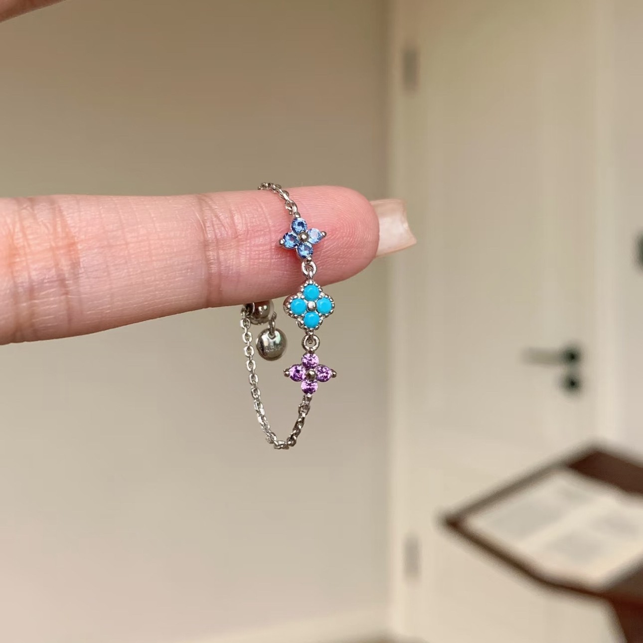 Monet's Garden Summer Dopamine Clover Pull Ring Women's Ins Style Niche Fashion Easiest for Match Light Luxury Advanced