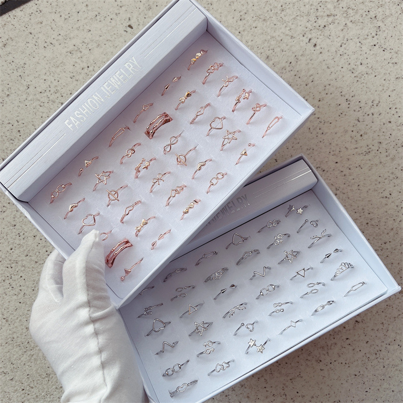 New European and American style ring girl student multiple mixed rose gold ring ring opening adjustable ring