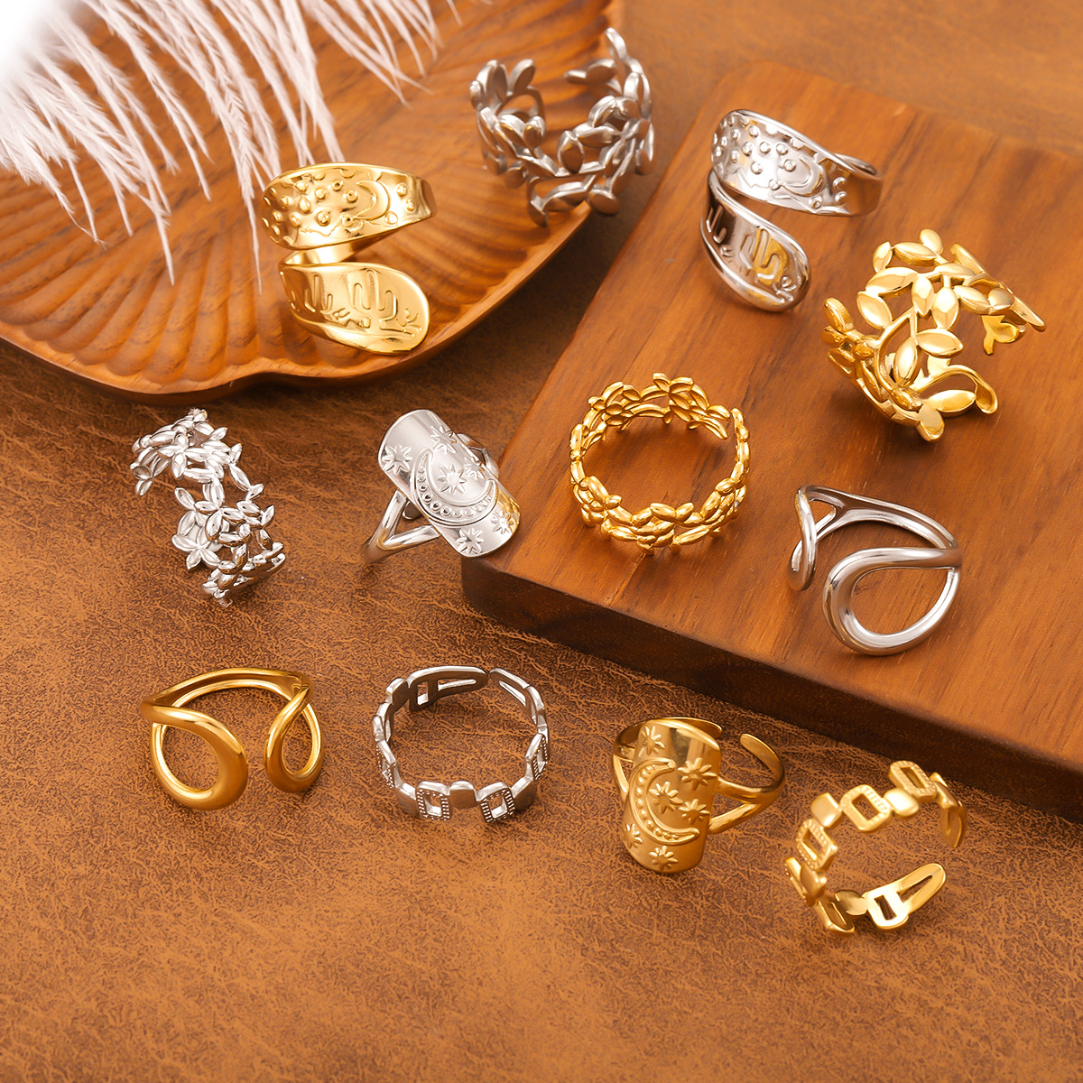 European and American Hand Jewelry Cross-Border Stainless Steel Gold Moon Star Women's Ring Exaggerated Fashion High-End Ring Jewelry
