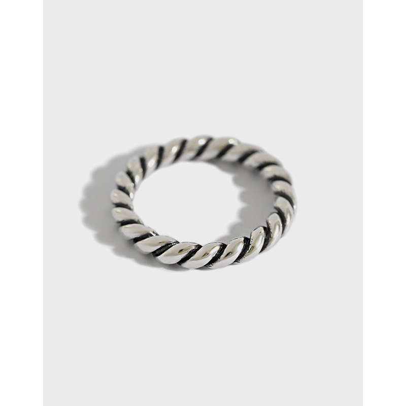 JT156 Korean S925 Sterling Silver Ring Retro Distressed Circle Twist Women's Ring Ring Distinctive All-match Silver Jewelry