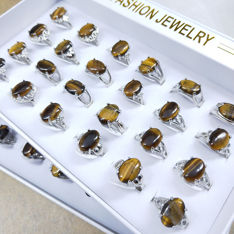 Cross-border hot-selling mixed natural stone tiger eye stone ring simple women's jewelry e-commerce foreign trade wholesale jewelry jewelry