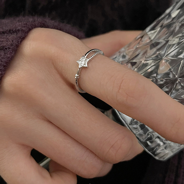Flash Diamond Pentagonal Stars Asymmetric Ring Women's Fashion Light Luxury Niche Design Sense ins Style Open Ring Wholesale