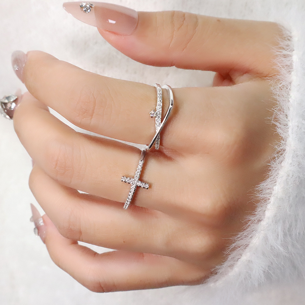 Ancient Cat Ning Cross Open Ring Women's Day South Korea Fashion Personalized Student Ins Fashionable Cross Index Finger Ring