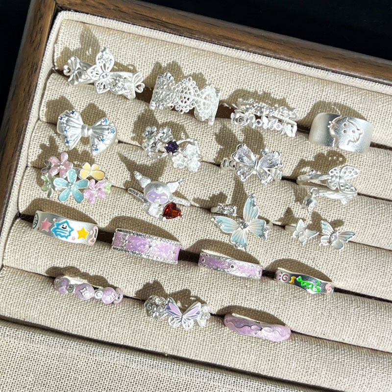 Symphony Mist Korean Style Fashionable Accessible Luxury Matte Silver Butterfly Flower Ring Women's Exquisite Stacking Sweet Ring Trend