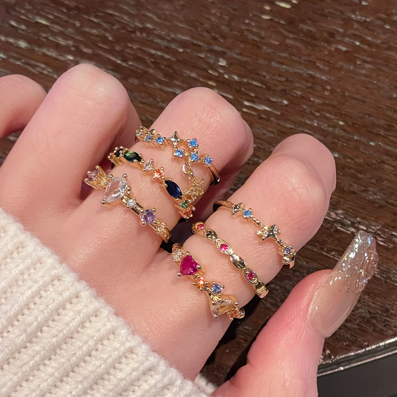 New Niche Design Color Treasure Color Zircon Opening Ring High-level Simple Fashion All-match Middle Ancient Jewelry Women