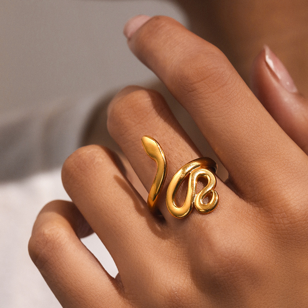 European and American Style Stainless Steel Ring with Irregular Cutout Open Ring for Women, Personalized 18K Gold-Plated Titanium Steel Jewelry