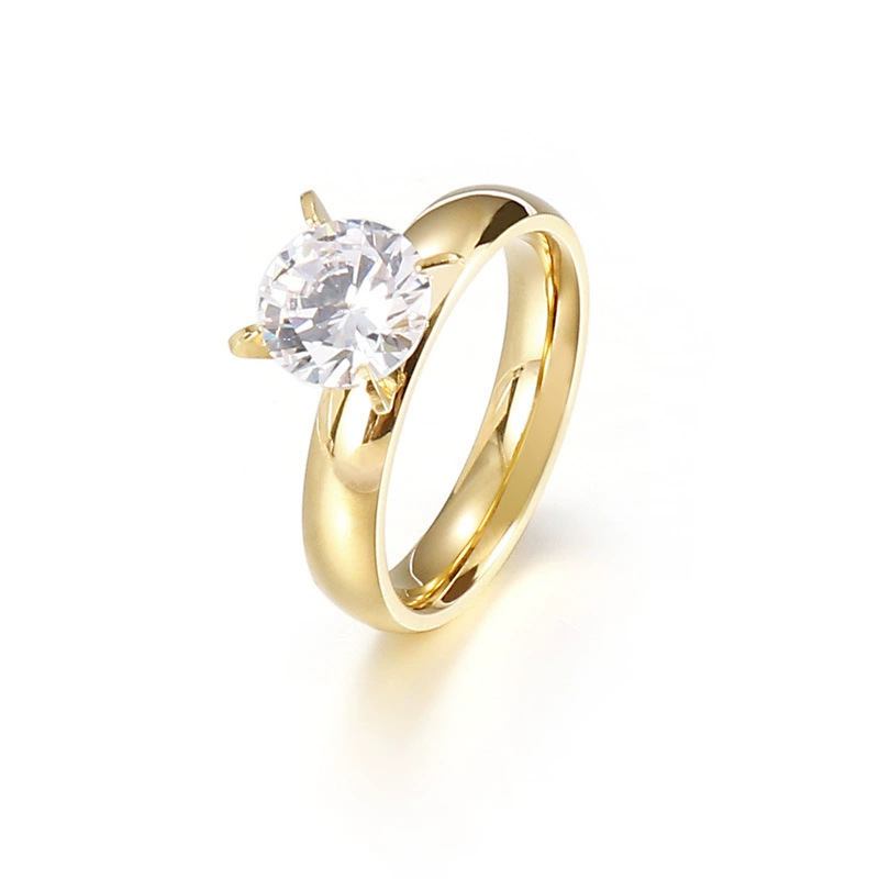 Fashion titanium steel inside and outside ball four claw square single diamond ring women's stainless steel 4MM curved zircon diamond ring