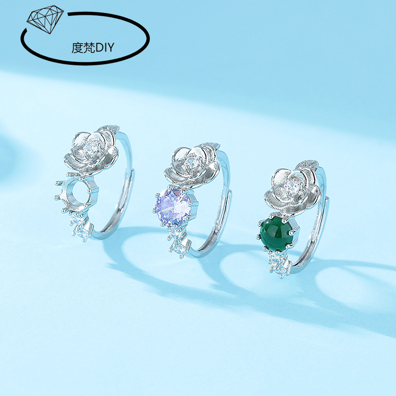 European and American Versatile White Gold Rose Copper Ring Empty-holder Women's Ring-holder Diy Inlaid Huizi Diamond Round 925 Egg Noodles