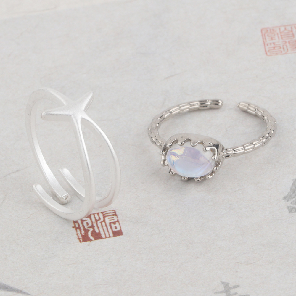 Cross-Border New Product Ring Moonstone Angel Devil Ring Female Niche Design Classy Open Adjustable Index Finger Ring