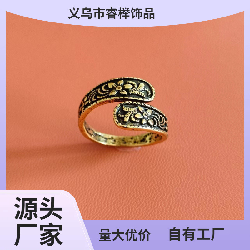 Cold Style Ancient Golden Tang Grass Pattern Braided Ring Women's Niche Design Unique Accessible Luxury High-End Open Index Finger Ring