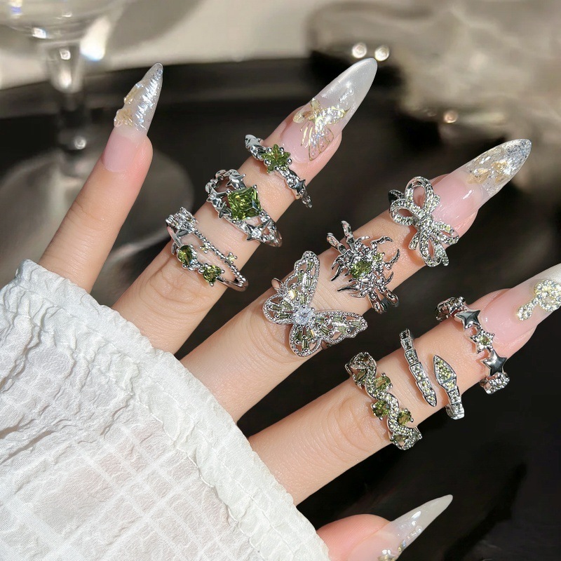 New Olive Green Zircon Exquisite Color Treasure Opening Ring Women's Light Luxury Full Diamond Bow High-end All-match Ring