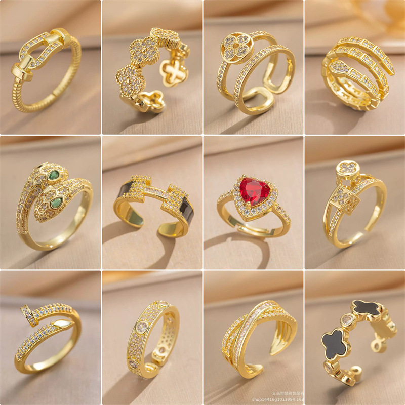 Internet Celebrity Exquisite Super Flash Zircon Ring for Girls, Accessible Luxury and High-End Opening Adjustable Ring, Simple Real Gold Electroplating