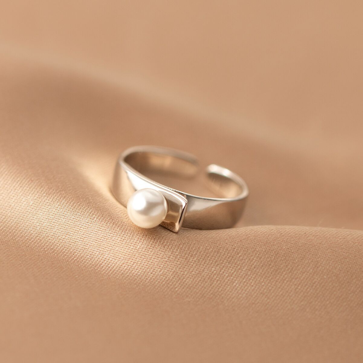 Korean Style Simple Glossy Pearl Ring for Women, Fashionable, Elegant, Artistic, Light Luxury, Ins-Style Open Adjustable Index Finger Ring Wholesale