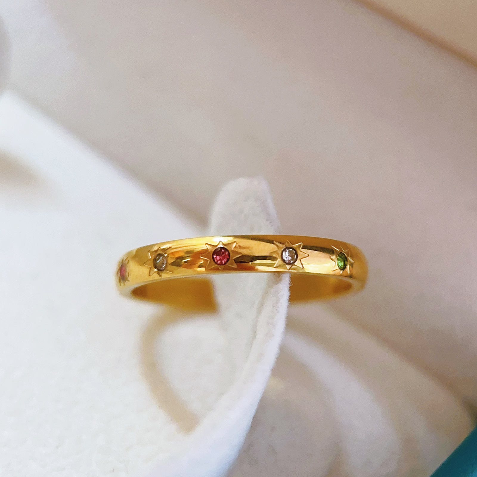 Light Luxury Niche Colored Diamond Star Ring for Women Plated with 18K Gold Ins Cool Style Fashion Titanium Steel Ring Retro Stacking Ring